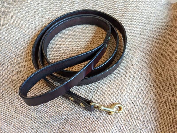 The leashes are made using 8-10 oz English Bridle Leather and solid brass hardware