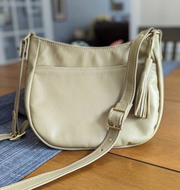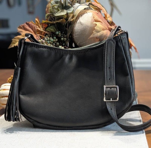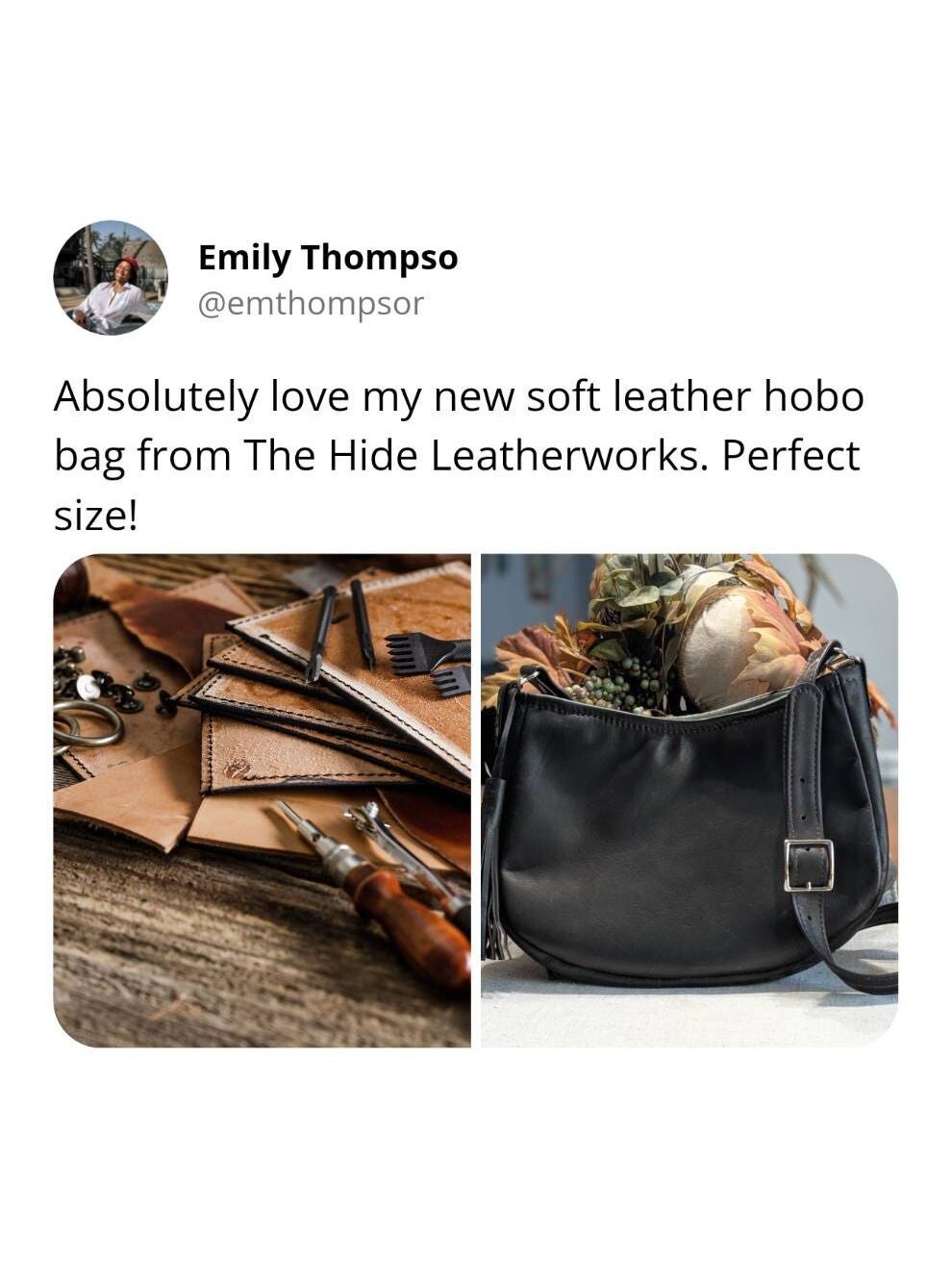 Introducing our stylish Leather Hobo style bag, perfect for the modern professional on-the-go. Crafted from high-quality leather, this sleek bag features a spacious interior and adjustable strap for hands-free convenience. The elegant color choices add a pop of sophistication to any outfit. Upgrade your accessories with this must-have piece available in three sizes.