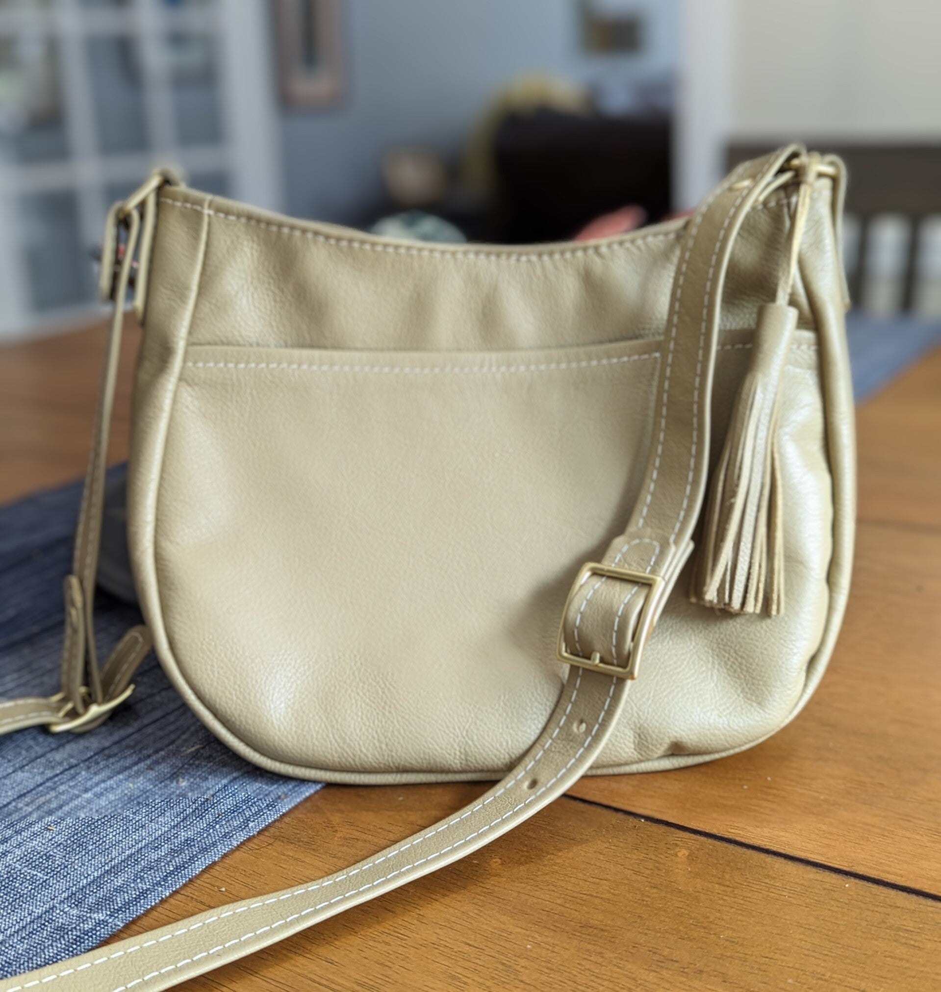 The medium is fully lined and is 11 wide, 8 high with a 3.5 gusset. The bag is equipped with 2 internal pockets and one external pocket and matching decorative tassel.