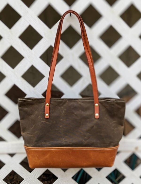 Introducing our versatile Leather and Waxed Canvas Tote Bag! This stylish bag is perfect for everyday use, whether you're running errands or heading to work. Crafted with durable leather and waxed canvas, this bag is both functional and fashionable. Get yours today and elevate your everyday look!
