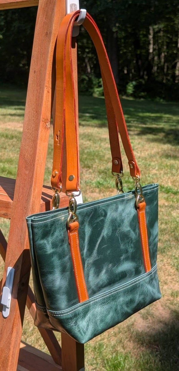 We do our best to select blemish free pieces for the bag, but it may have small scars that are native to the hide. Choose from a wide variety of colors (bag shown is Russet).